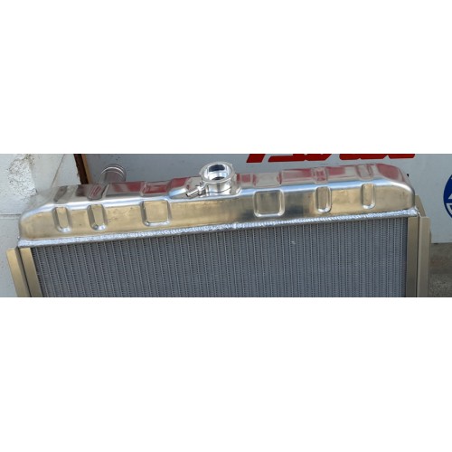 THIS DESIGN PROVIDES 20% ADDITIONAL COOLING OVER COPPER 3 ROW AND FEATURES FORMED ALUMINUM UPPER AND LOWER TANKS FOR THE FACTORY RADIATOR APPEARANCE.