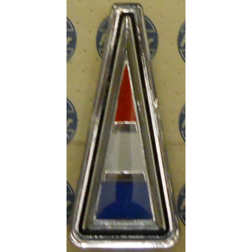 1969 RAMBLER RED, WHITE AND BLUE HOOD ORNAMENT WITH BASE.