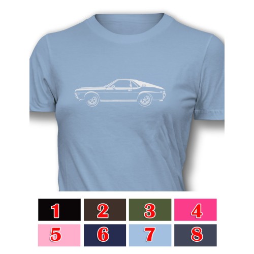 1968-1969 AMX PROFILE WOMEN'S T-SHIRT WITH IMAGE PRINTED ON 4.5 OZ, 100% PRE-SHRUNK COTTON.