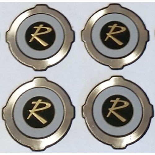 COLORS: THESE ARE CHROME, SILVER, BLACK WITH A GOLD "R" IN THE MIDDLE.