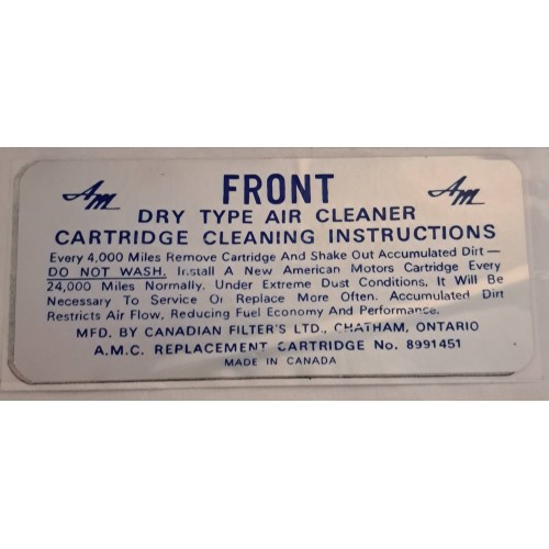 1967-1970 V8 MODELS, AIR CLEANER INSTRUCTIONS DECAL