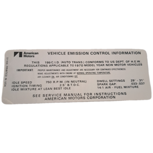 1970 199 6 CYLINDER ENGINE COMPARTMENT EMISSIONS DECAL