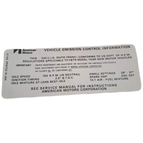 1970 232 6 CYLINDER ENGINE COMPARTMENT EMISSIONS DECAL