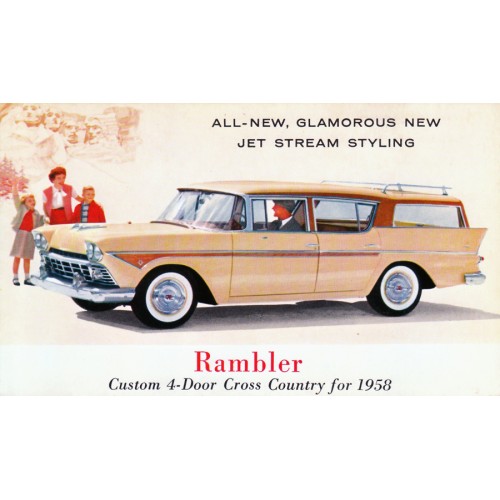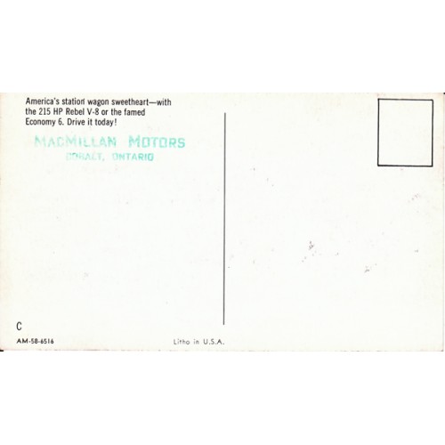 1958 RAMBLER 6 OR REBEL V8 4-DOOR CROSS COUNTRY STATION WAGON, 2-TONE, UNUSED POST CARD.