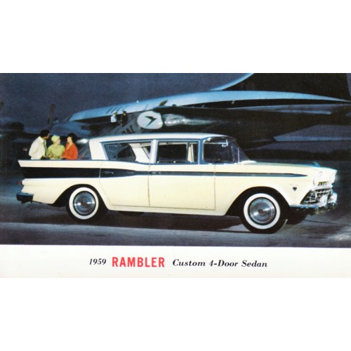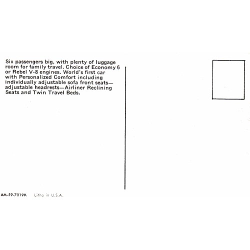 1959 RAMBLER SIX OR REBEL V8 WHITE CUSTOM CROSS COUNTRY STATION WAGON UNUSED POSTCARD.