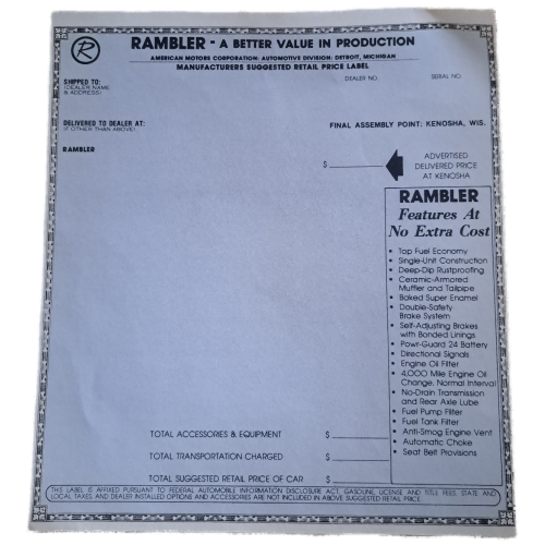1963-1965 BLANK NEW CAR WINDOW STICKER READY
