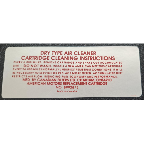 1973 ALL V8 MODELS AIR CLEANER DECAL, HORNET & GREMLIN