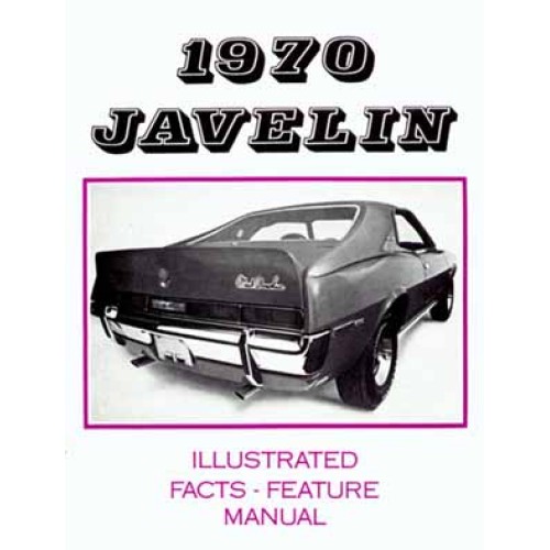 "1970 JAVELIN ILLUSTRATED FACTS" IS A 24 PAGE ASSIMILATION OF TECHNICAL DATA AND EQUIPMENT OPTIONS FOR THE 1970 JAVELIN. THIS IS AN EXCELLENT REFERENCE SOURCE FOR EVERY AMC LIBRARY.