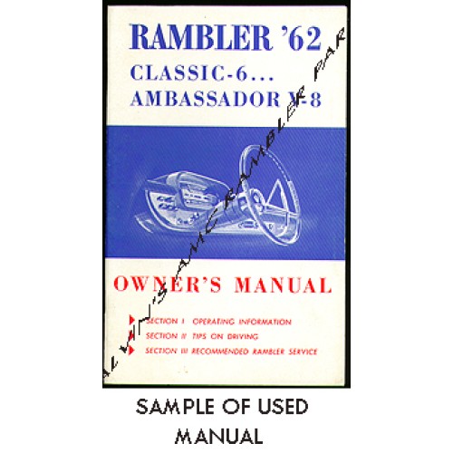 1962 CLASSIC AND AMBASSADOR OWNERS MANUAL, REPRINT.